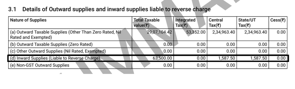 The liability payable on account of RCM has to be reported in Table 3.1(d) – Inward Supplies (liable to RCM).