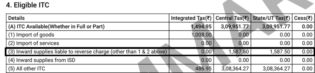 After payment of the liability on account of RCM through payment of cash, the same can be claimed as Input Tax Credit (ITC) in Table 4(A)(3) – Inward Supplies liable to reverse charge.